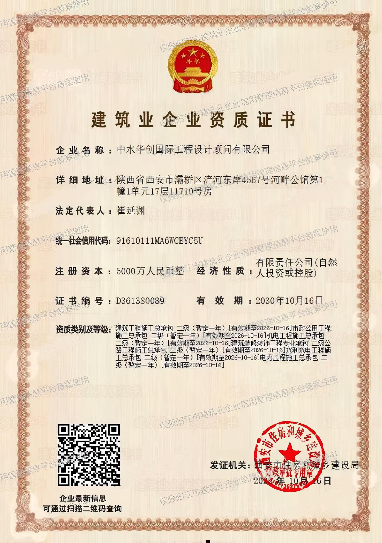 中水公路、水利、建筑甲设计资质